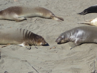 Elephant Seal Beach. My guidebook didn't make much of it, and I only stopped at the Vista Point/Elephant Seal sign because I can’t concentrate on driving if I have a sandwich screaming 'EAT ME’ from the passenger seat. My usual experience with spotting seals, whales, dolphins etc is not spotting them. Everyone else around me gets their cute sea creature porn fix and I am left staring blankly at the water, mistaking seaweed for flippers.